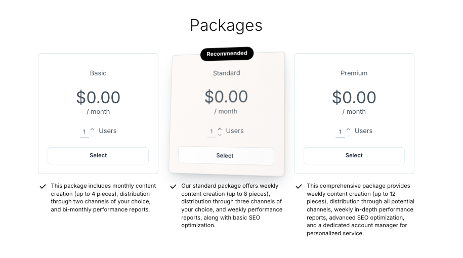These are tailored for external clients who need content marketing services.