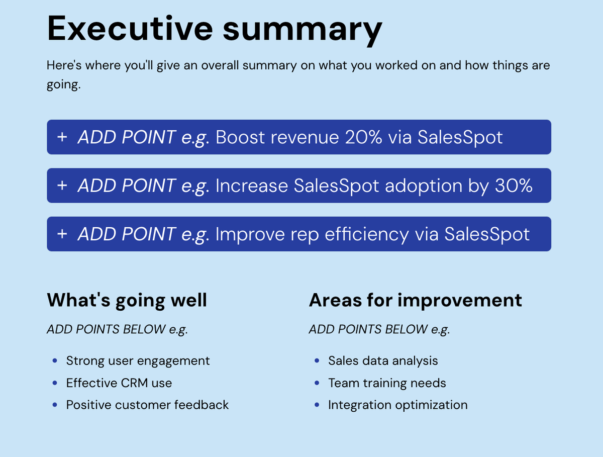 Consider leading with business value and ROI in your executive summary. Show decision-makers exactly what their investment yields, both quantitatively and qualitatively.