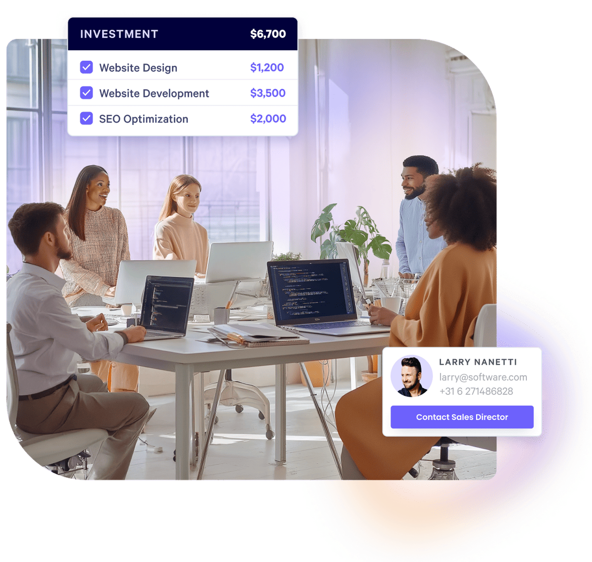 Send every proposal as a customized, private website. Include dynamic images and videos, as well as interactive elements like pricing cards and ROI calculators to give your buyers a unique and memorable experience.