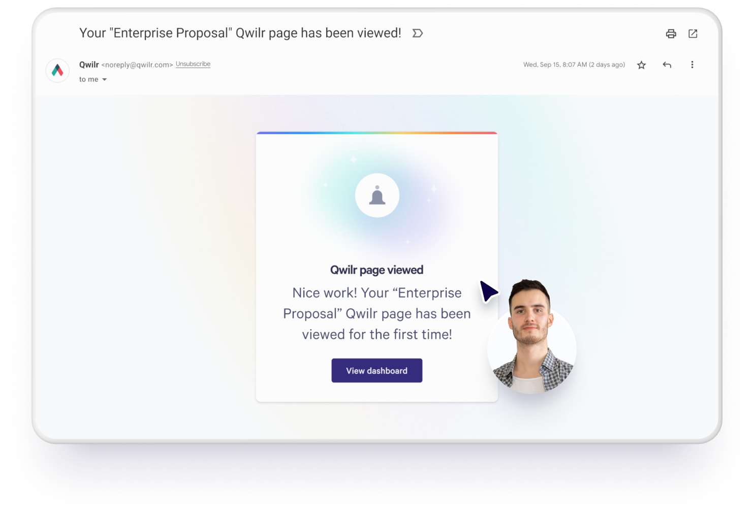 Qwilr's proprietary engagement tracking means you'll get notified when buyers are engaged or suddently stop interacting and viewing your proposals.